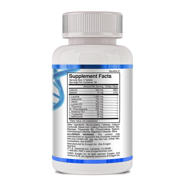Evogen Nutrition has always set the standard for ultra-clean and pure amino acid sources. Amino K.E.M. tablets are no different and offer a new level convenience compared to the powdered form. This formula is packed with a full spectrum of properly dosed EAA’s and BCAA’s to accelerate recovery & muscle growth anytime of the day or night.