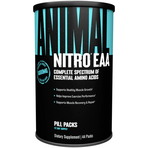 Animal Nitro combines a full spectrum of Essential Amino Acids (EAAs) with BCAAs in precise ratios modeled after human muscle tissue for superior absorption and rapid results. Each pack delivers 6,000 mg of 100% uncoupled EAAs to enhance protein synthesis, prevent muscle breakdown, accelerate recovery, and maximize muscle growth.