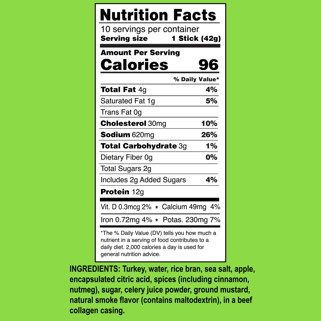 APPLEWOOD SMOKE OSTRIM Turkey Sticks. Our Applewood Sticks are lightly seasoned and cooked slow and low with a hint of applewood flavor. This delicious and delightful sweet and savory smoke flavor goes perfectly with our all natural premium lean turkey meat.