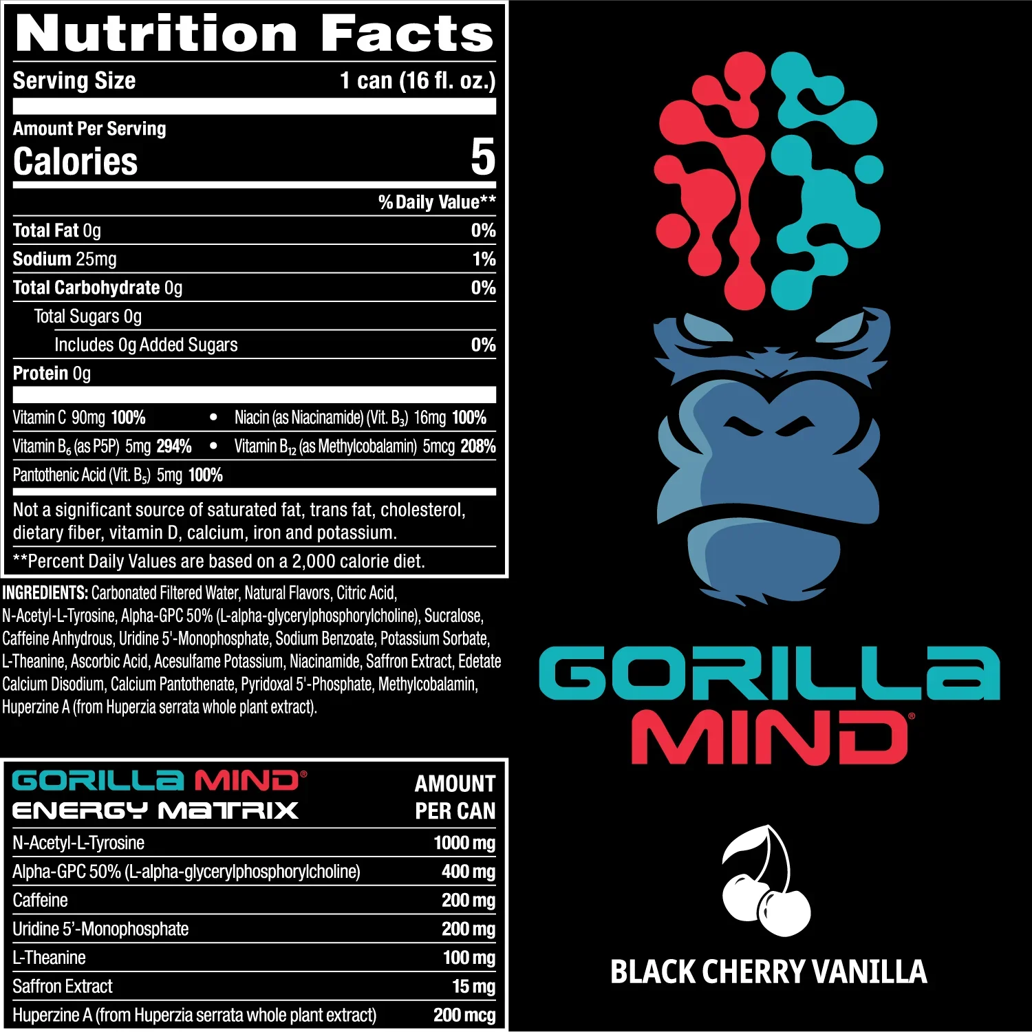 Gorilla Mind Energy Drink – Black Cherry Vanilla