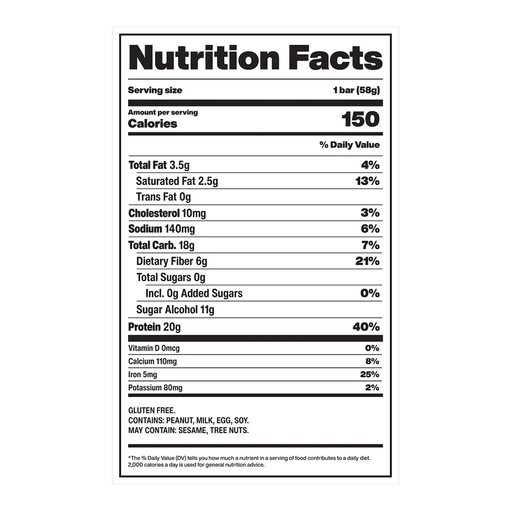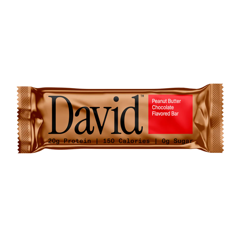David Protein Bronze Bar in Peanut Butter Chocolate flavor delivers a decadent, dessert-style protein bar experience while providing 20 grams of high-quality protein, 150 calories, and zero grams of sugar, designed to support muscle gain, recovery, and fat-loss goals while fitting into tracked macronutrient plans. This flavor features a fluffy peanut butter-flavored core with rich peanut ganache, finished with crisp texture and dipped in a smooth chocolate-flavored coating for an indulgent taste and satisfying crunch. The Bronze series combines rich, candy-like flavor and texture with functional nutrition, making it a satisfying choice for those seeking great taste without sacrificing protein content.