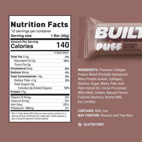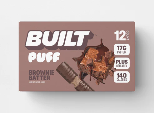 Gluten-free brownie-marshmallow. This Puff has a delicious brownie batter flavor, perfect fluffy texture, and it is covered in Built’s signature chocolaty coat. This will have you completely forgetting that you are eating a protein bar. No need to pinch yourself, this is real life.