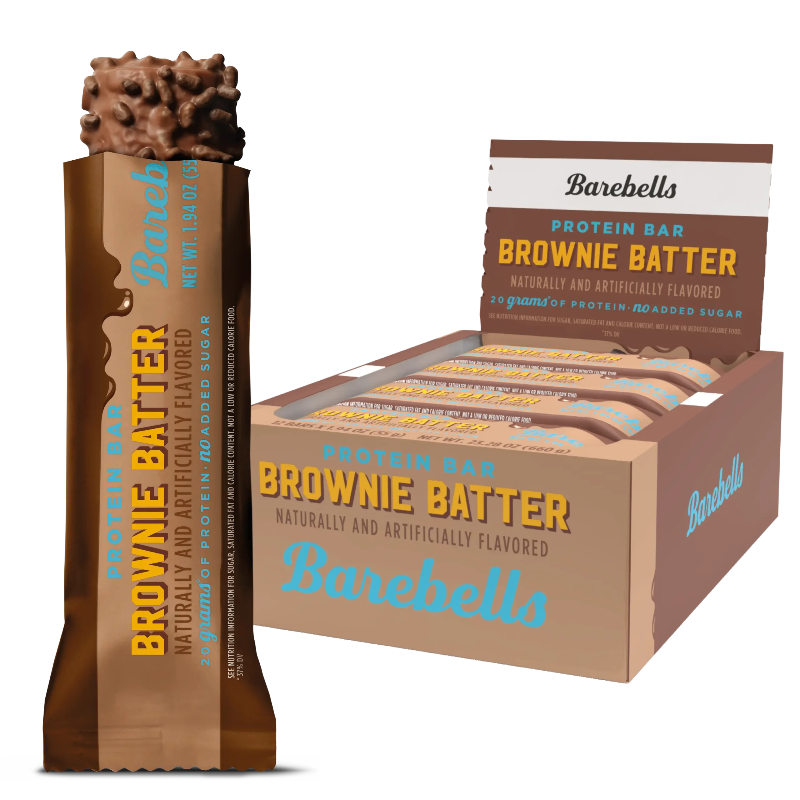 Barebells Brownie Batter Original Bar delivers rich, indulgent chocolate flavor inspired by classic brownie batter — with a soft, gooey center and layered textures that make every bite feel like dessert. With 20g of protein and no added sugar*, this chocolate protein bar is the perfect snack for satisfying cravings without compromising taste.