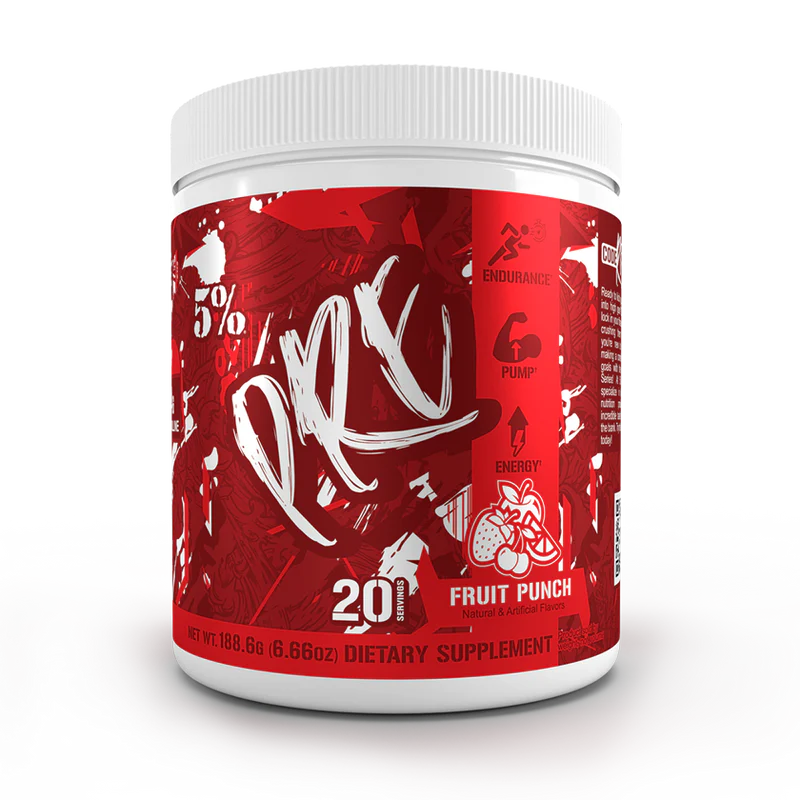Jumpstart your fitness journey with 5% Nutrition Code Red Series PRE. This powerful pre-workout delivers clean energy, sharp focus, stronger endurance, and intense muscle pumps. With 300 mg of natural caffeine, it boosts performance and helps you look and feel your best. Get more out of every workout with Code Red Series PRE.