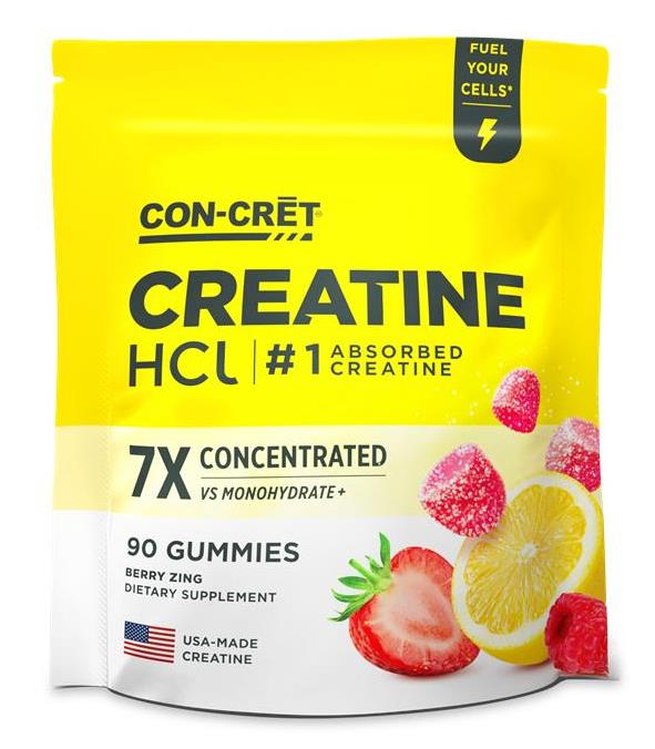 CON-CRĒT Creatine Gummies are a convenient and delicious way to get your daily dose of creatine. These gummies contain concentrated creatine HCl. Creatine HCl is 7x concentrated compared to creatine monohydrate. All it takes is 3 creatine gummies a day for enhanced muscle health, immune support, heart health, and reproductive wellness*.