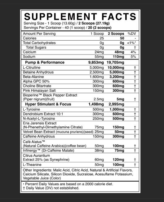 Built for high-stim athletes, DEFY unleashes 450mg of caffeine from three sources for long-lasting intensity; amplified with Dendrobium and Eria Jarensis for that hard-hitting, locked-in energy. Power every session with 10g L-Citrulline, 3.2g Beta-Alanine, and 5g Betaine Anhydrous. DEFY delivers real pump, performance, and endurance; without fluff, fillers, or shortcuts. Formulated with Velvet Bean (L-Dopa), Dendrobium, and Eria Jarensis to support intense mental focus, training motivation, and a clean, mood-lifting effect without the crash.