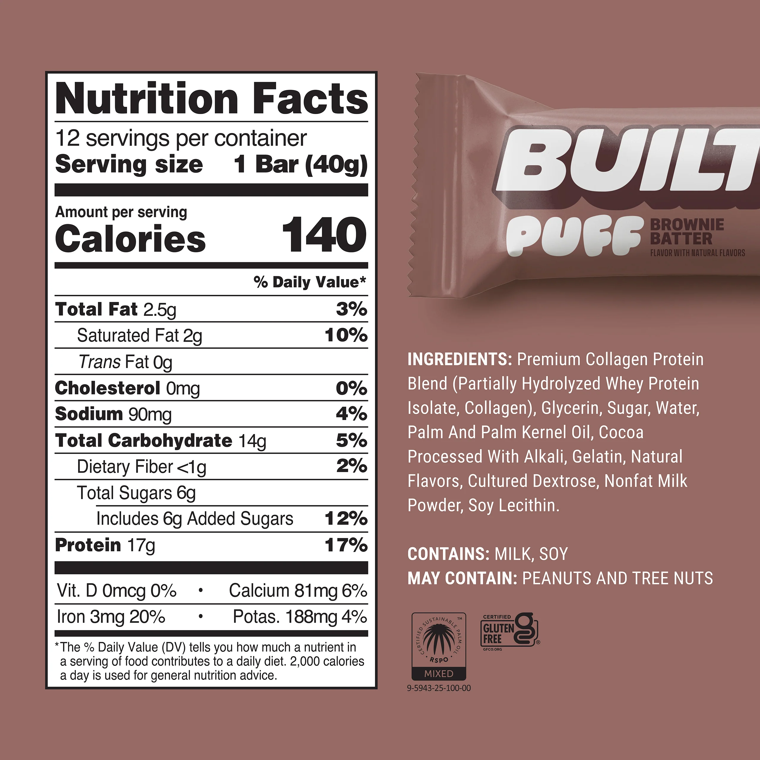 Indulge in the rich, chocolatey taste of brownie batter—reimagined as a light, protein-packed treat. The Built Bar Brownie Batter Puff features a soft, airy center with a smooth, marshmallow-like texture, delivering a satisfying experience that feels more like dessert than a traditional protein bar.