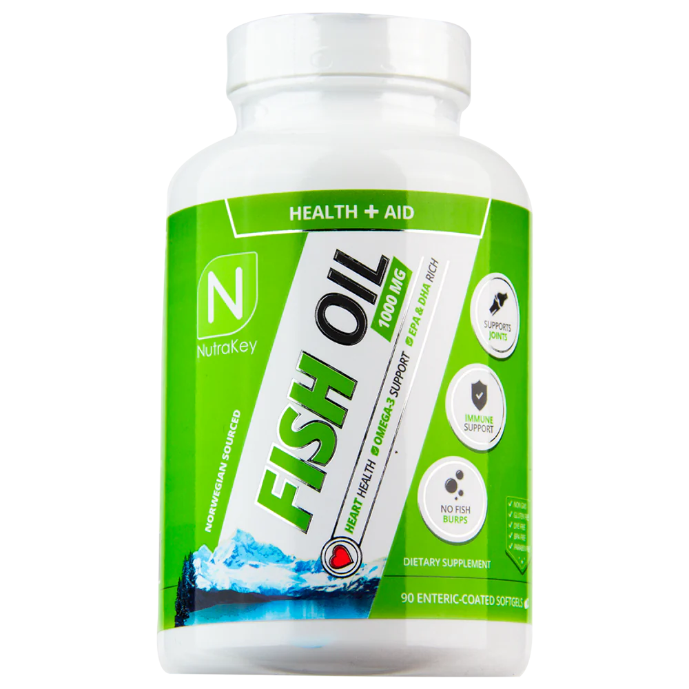 Health + Aid. Norwegian Sourced. Heart Health. Omega-3 Support. EPA & DHA Rich. No Fish Burps. Immune Support. Supports Joints. The Finest Quality. Sourced from the deepest, coldest waters of the world – fish oil is a rich source of Omega-3 Essential Fatty Acids. Essential Fatty Acids (EFAs) must be acquired from diet or supplementation. Omega-3 EFS’s can be found naturally in fish, dark green veggies, and various seeds & nuts. Omega-3 EFA’s play a key role in metabolism for: Heart Health, Cognition, Endocrine Function.