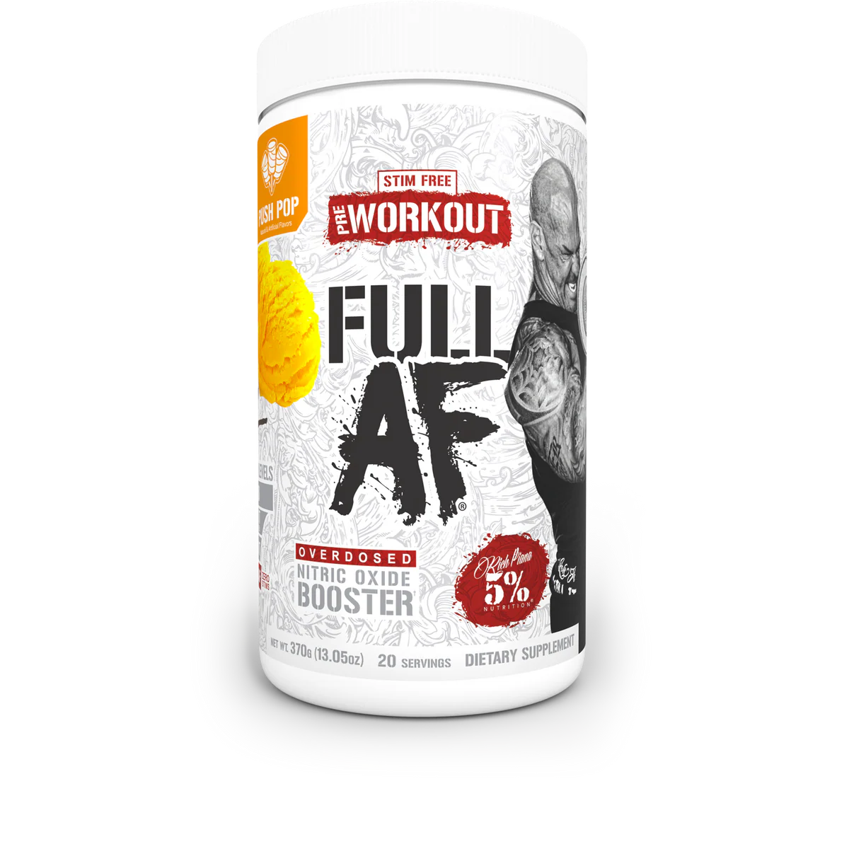 CAFFEINE-FREE PRE WORKOUT POWDER formulated to increase nitric oxide levels, vascularity and muscle cell volume, so your working muscles become Full AF! Lift heavier and annihilate fatigue to fuel muscle growth.