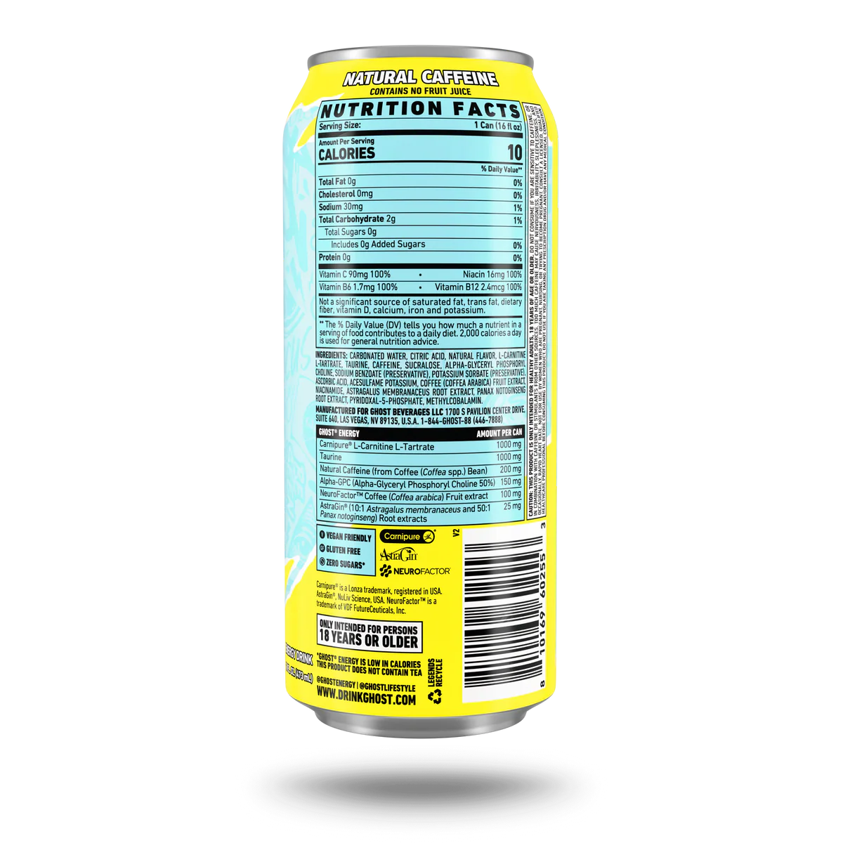 GHOST Energy combines the nootropics of Carnipure L-Carnitine, Alpha-GPC, Neurofactor, and AstraGin to help your body convert fatty acids into energy, support brain and cognitive function, and absorb a wide range of nutrients.*