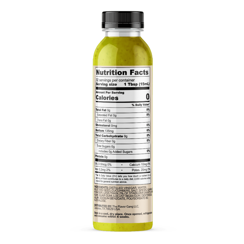 Meet your new go-to drizzle for everything from hot dogs to grilled chicken. The Glizzy – Tangy Pickle sauce packs a punch of real dill, garlic, mustard seed, and vinegar for that unmistakable pickle flavor that hits hard and leaves you wanting more.