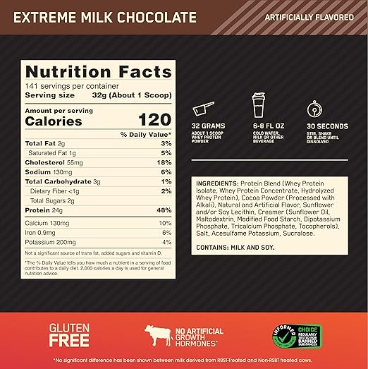 Gold Standard 100% Whey – 24g of protein per serving to help build and maintain muscle when taken over time with regular resistance training