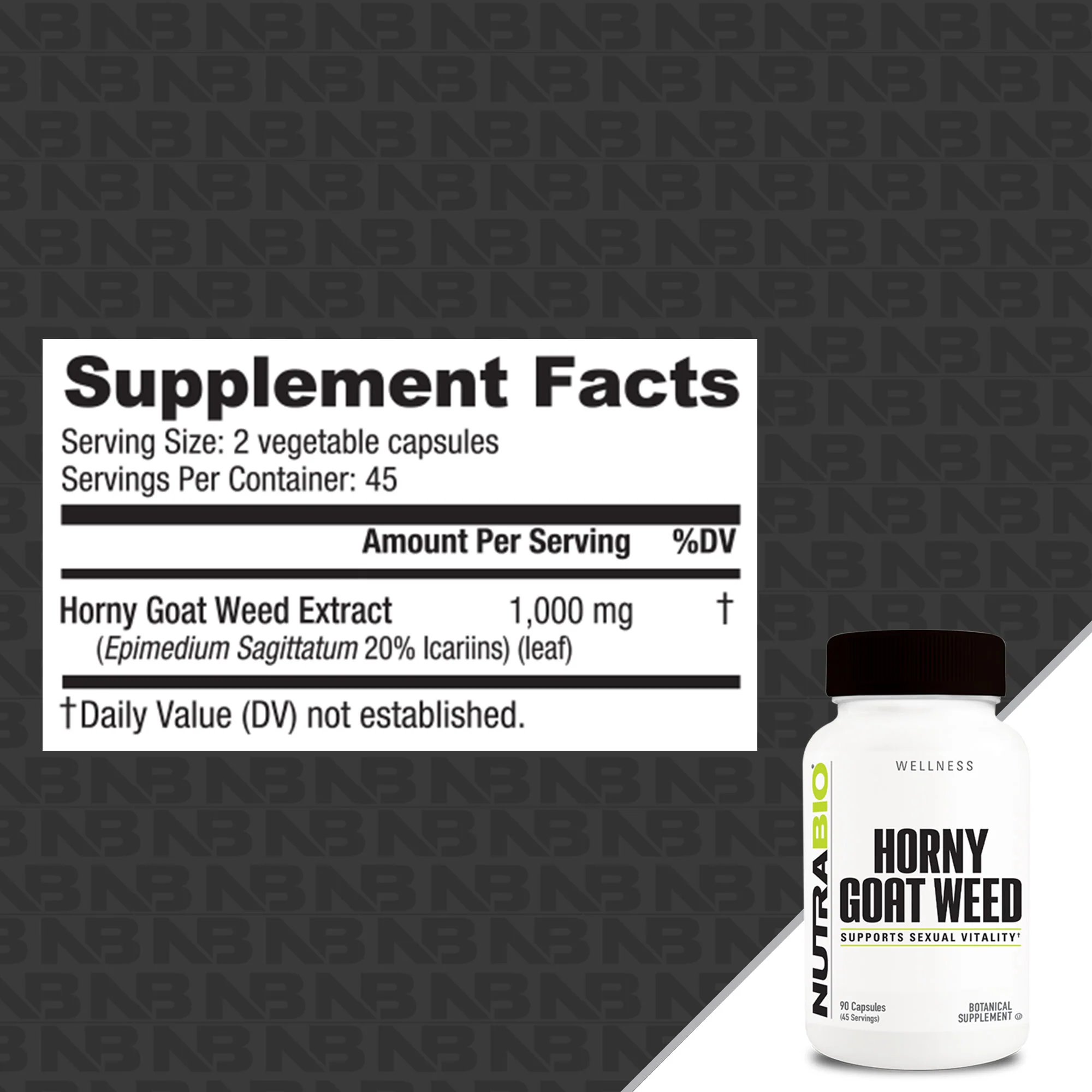 Horny goat weed, also called Epimedium or Yin Yang Huo, is a small shrub with wide, heart-shaped leaves that resemble ivy. According to legend, a Chinese goat herder noticed an increase in his herd’s sexual activity after they fed on the plant. It came to be known as Horny Goat Weed and began being used as a libido stimulator for both men and women. Horny Goat Weed has been shown to help support healthy sexual functions. NutraBio Horny Goat Weed is standardized to 20% icariins, so you receive a consistent amount of the most important active element of the herb.
