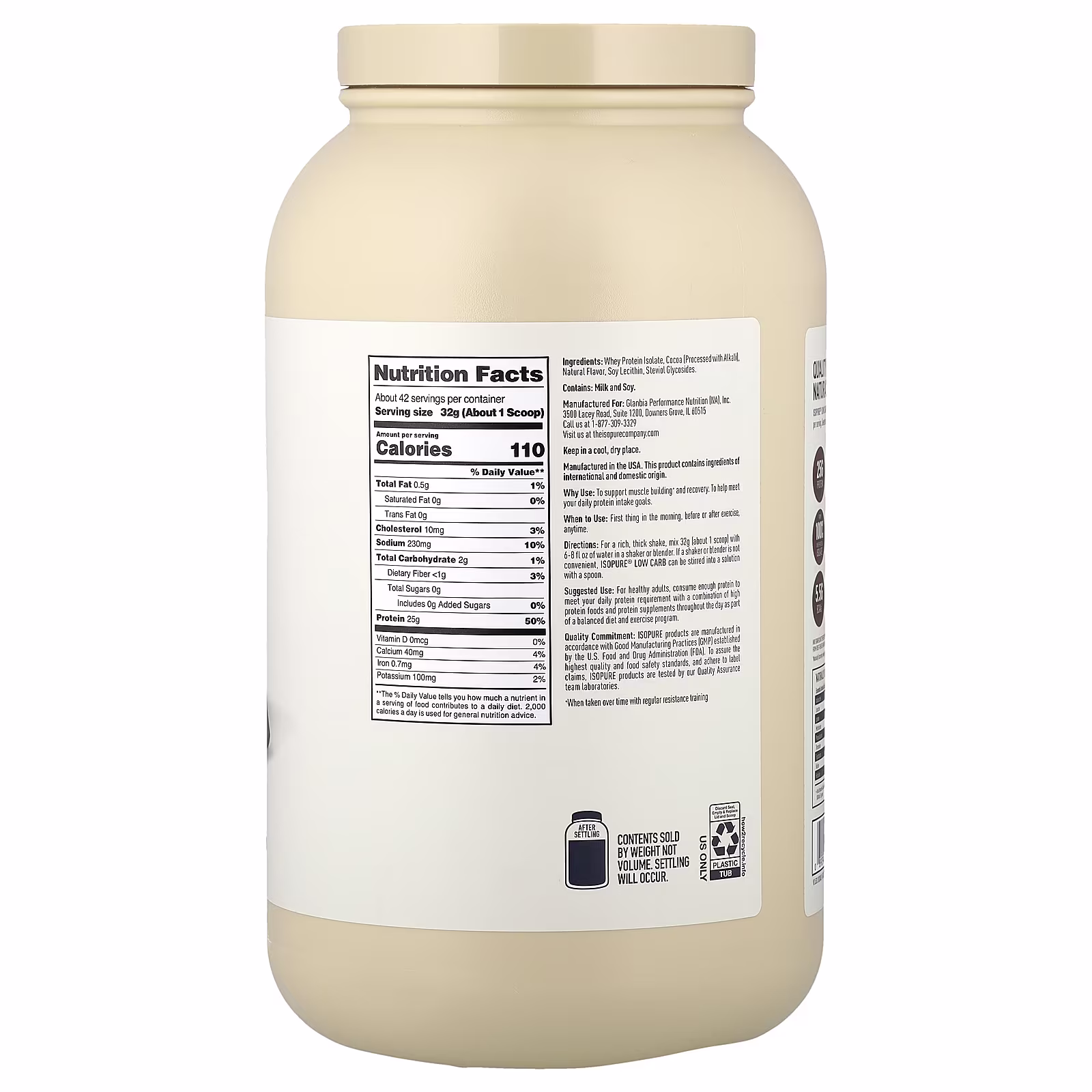ISOPURE Low Carb Naturally Flavored protein provides 25 grams of 100% whey protein isolate per serving with minimal carbohydrates, making it ideal for low-carb or keto-friendly lifestyles. Naturally flavored and sweetened, it blends easily into smoothies, shakes, or recipes without overpowering taste, helping you reach your daily protein goals while keeping carbs in check.