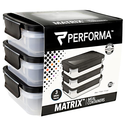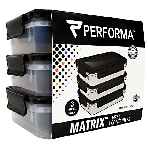 Performa. 3 Meal Pack. BPA Free. Matrix. Meal Containers. 3rd Party Tested. Microwave Safe. Freezer Safe. Dishwasher Safe. BPA Free: Non-Toxic And 3rd Party Tested. EXTRALAST UV INK: Designed To Protect From Fading And Chipping. Stack Or Nest For Storage. 100% Leak Proof And Airtight. DURAPLEX Made With Shatter Resistant Polymer Blend + Icon. Easy Grab And Close Tabs. Perfoma Is Performance. At Performa, We Stand Behind Our Products. We Are So Confident That Our Products Quality Will Stand Up To The Demands Of Any Customer, That We Offer A 100% Limited Lifetime Guarantee For All Our Products.