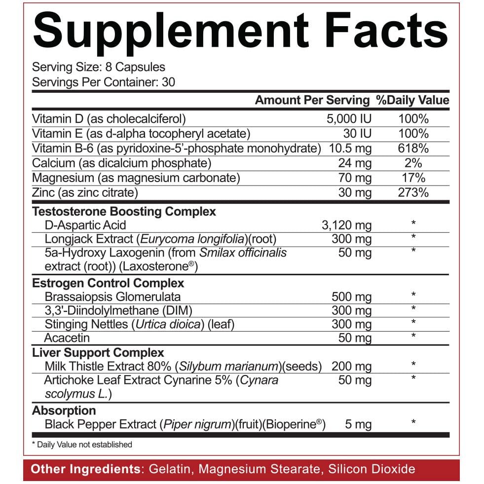 Build More Muscle with scientifically proven D-Aspartic Acid (DAA), ZMA, Vitamin D and Longjack Extract as a stress adaptogen to balance cortisol levels. Great for coming off a cycle!