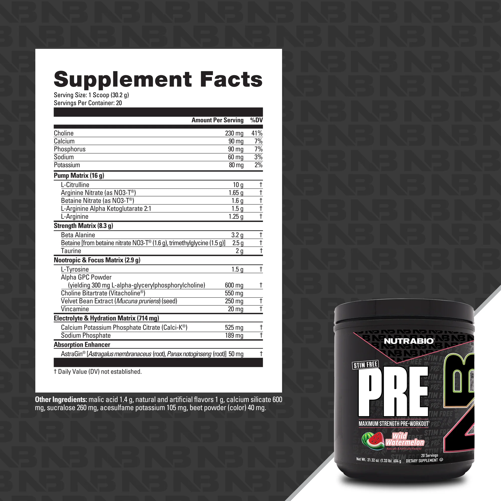Not everyone is looking for a pre-workout loaded with caffeine, yet they demand a product that will deliver results. NutraBio PRE Stim-Free is an innovative, max-strength stim-free pre-workout that helps you push harder from your very first rep all the way to your last.