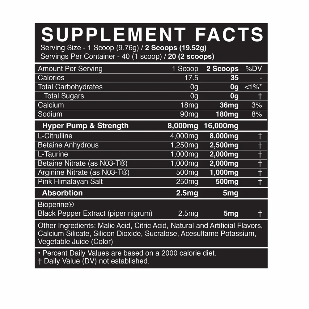 Every ingredient in PURPOSE: PUMP serves one purpose: blood flow and performance. Unlike our NITRICOXIDE pre-workout, which blends endurance, focus, and pump through ingredients like Peak02®, Watermelon Juice Powder, CITRAPEAK®, and Ginkgo Biloba, PURPOSE: PUMP is 100% dedicated to maximizing pumps. Loaded with high-dose L-Citrulline, performance-enhancing nitrates, Betaine Anhydrous, Taurine, and Pink Himalayan Salt, this formula is designed for skin-stretching pumps, increased vascularity, and undeniable training intensity. When it comes to pure pump power, you will feel the difference.