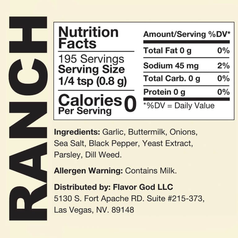 This limited edition Ranch seasoning is like mom use to make. You will enjoy flavors like: fresh garlic, herbs, pepper, and an aromatic finish of sweet onions that resonate like a freshly made Ranch seasoning.