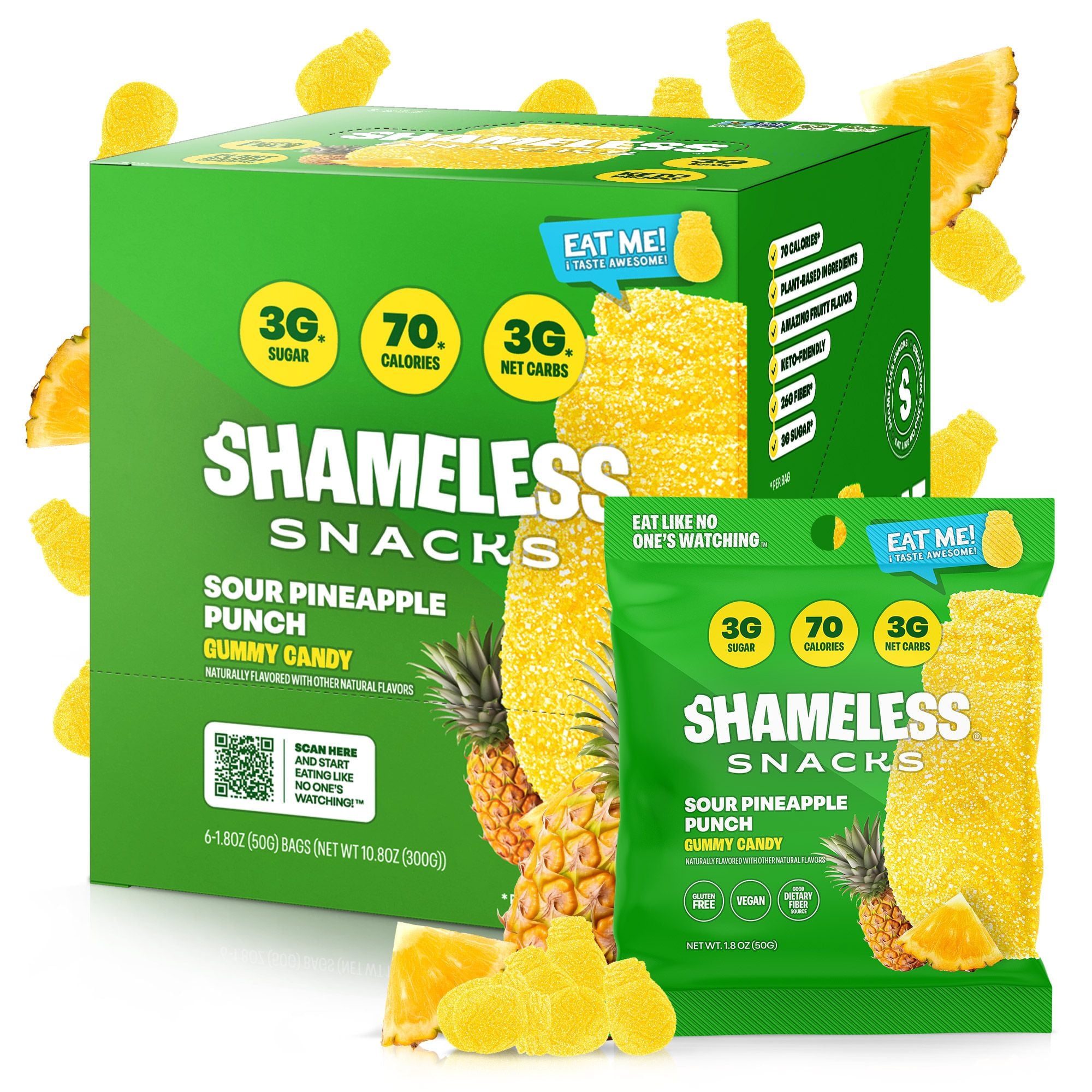 Shameless Snacks | Snacks That Taste Good and Feel Good, Too! Guilt-Free delicious candy with only 3g sugar, 3g net carbs, and 70 calories per bag. Real Natural Fruit Flavors. Vegan, Gluten-Free, and Keto-Friendly Candy. Eat like no one’s watching! Guilt-Free delicious candy with only 3g sugar, 3g net carbs, and 70 calories per bag.