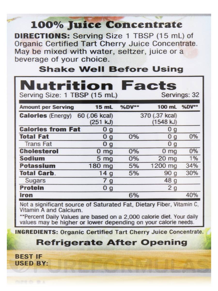 Dynamic Health Organic Tart Cherry Juice Concentrate Ultra 5X provides all the Tart Cherry Juice you love in one, easy tablespoon. Tart cherries contain a nutritonal goldmine of phenolics, which are naturally occuring plant compounds. The main type of phenolic in cherries are anthocyanins. Organic Tart Cherry Juice Concentrate Ultra 5X is ideal for tropical smoothies, fruit cocktails and as a mixer. It is a delicious, natural topping for yogurt, ice cream, fruit, pastry and dessert. Organic Tart Cherry Juice Concentrate Ultra 5X Features 100% Tart Cherry Juice Concentrate.