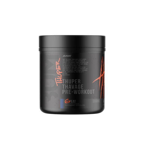 Thuper Thavage is one of the top pre-workout supplements, giving you everything you could possibly want in a pre. With 6,400 mg of Beta Alanine, 6,000mg of L-Citrulline, 5,000mg of Creatine, and 400mg of Caffeine in each scoop- nothing will stand in your way of dominating your workout.