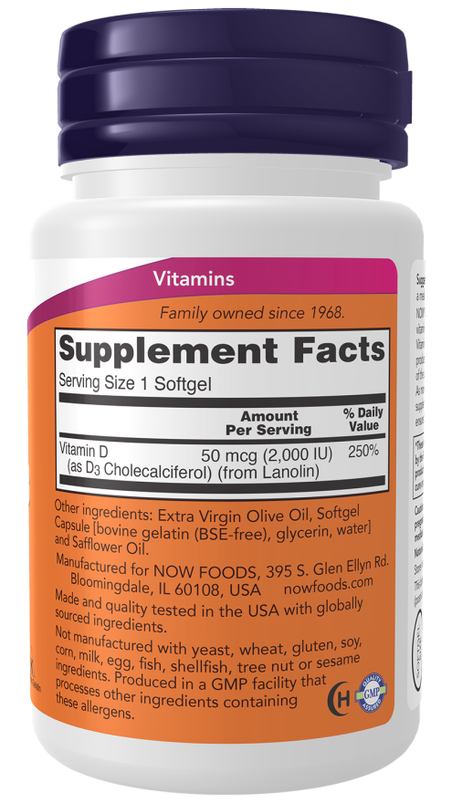 NOW® Vitamin D3 softgels provide this essential nutrient in a highly absorbable liquid form. Vitamin D3 is naturally obtained from limited dietary sources or synthesized in the skin through sun exposure, but modern lifestyles and reduced sun exposure often make supplementation necessary. This softgel formulation ensures your body receives an effective and convenient source of vitamin D3.*