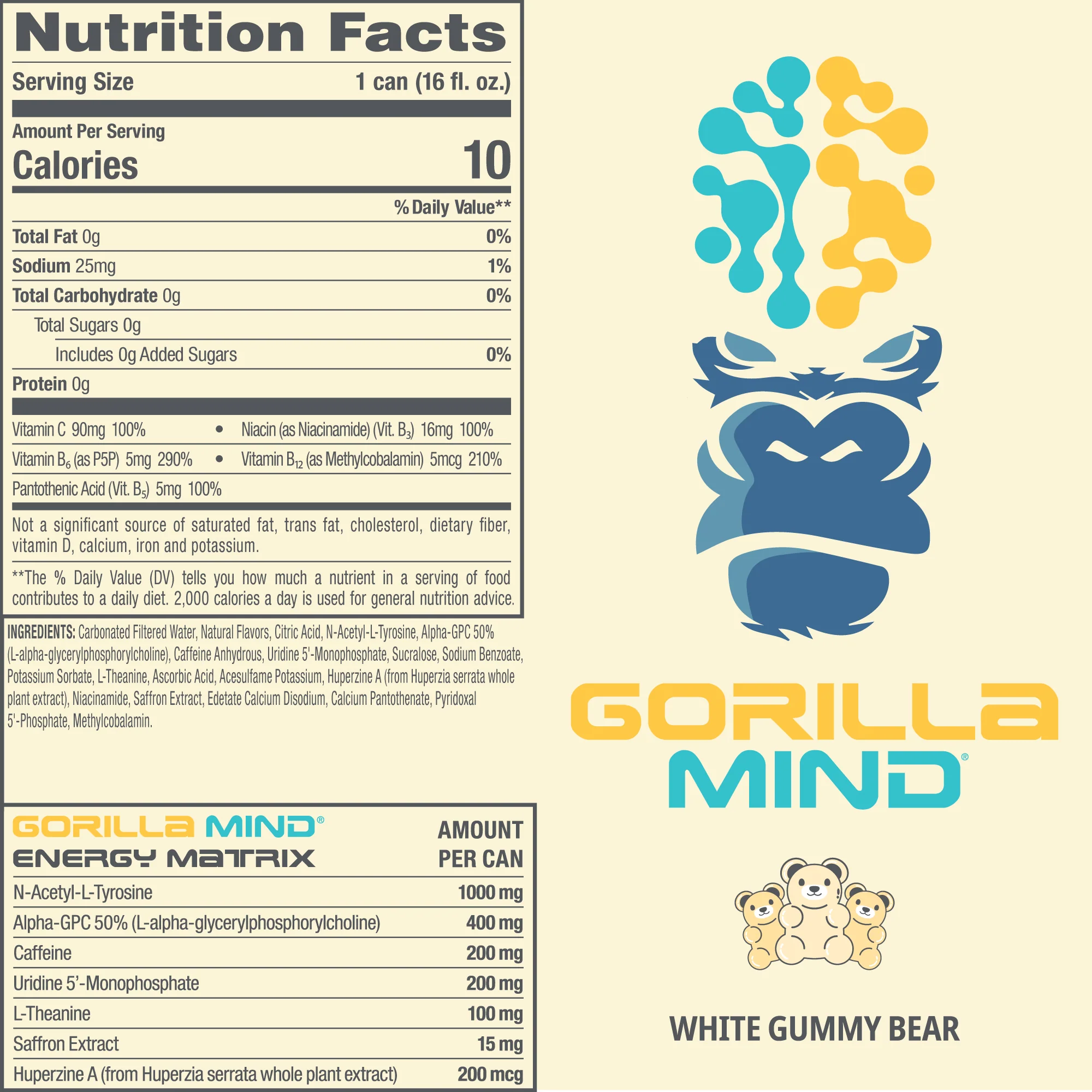 Fuel your focus with Gorilla Mind Energy Drink – White Gummy Bear, a premium sugar-free nootropic energy drink that combines nostalgic candy flavor with clean, performance-driven energy. Designed for athletes, gamers, entrepreneurs, and students, this advanced formula delivers smooth, sustained power without the crash.